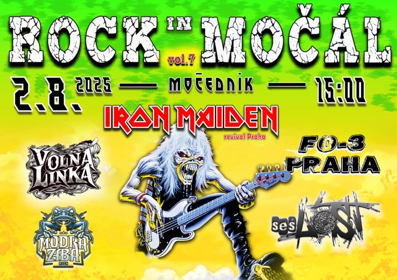 Zveme Vás na Rock In Močál, který se odehrává v Močedníku 2.8.2025 od 15:00 hodin. Hrají Iron Maiden revival Praha, Volná Linka, FO-3 Praha a další.